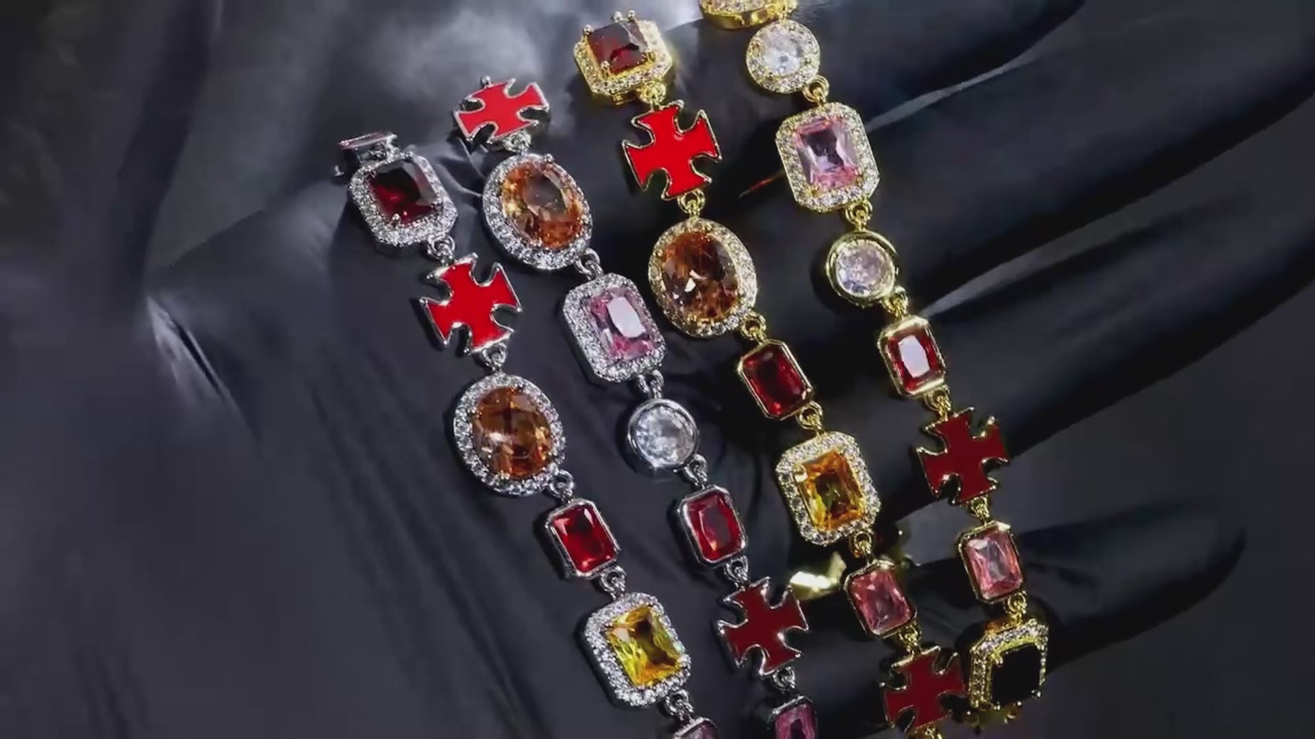 925 Sterling Silver base, plated in radiant rhodiumHand-set simulated gemstones in a brilliant ocean gradient
