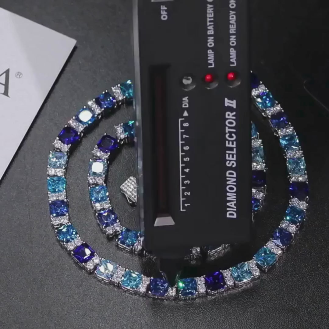 925 Sterling Silver base, plated in radiant rhodiumHand-set simulated gemstones in a brilliant ocean gradient